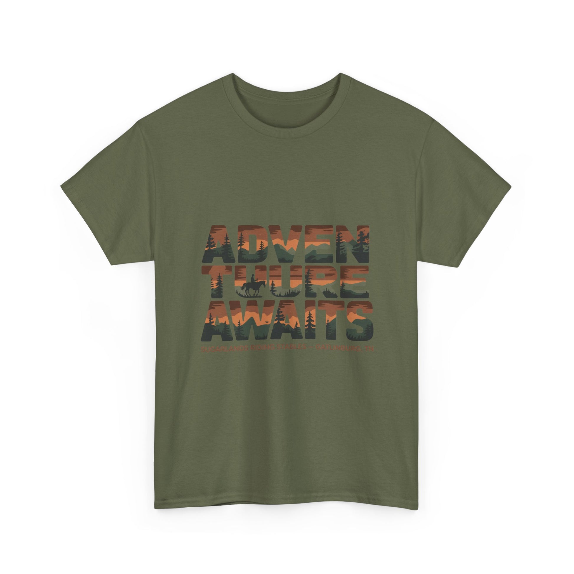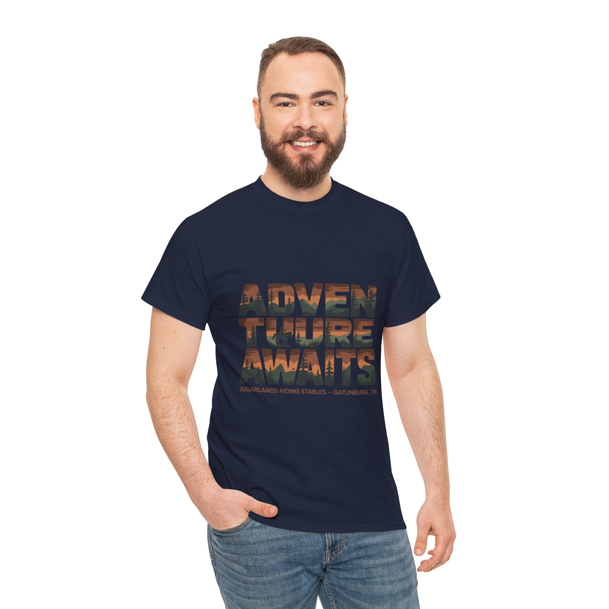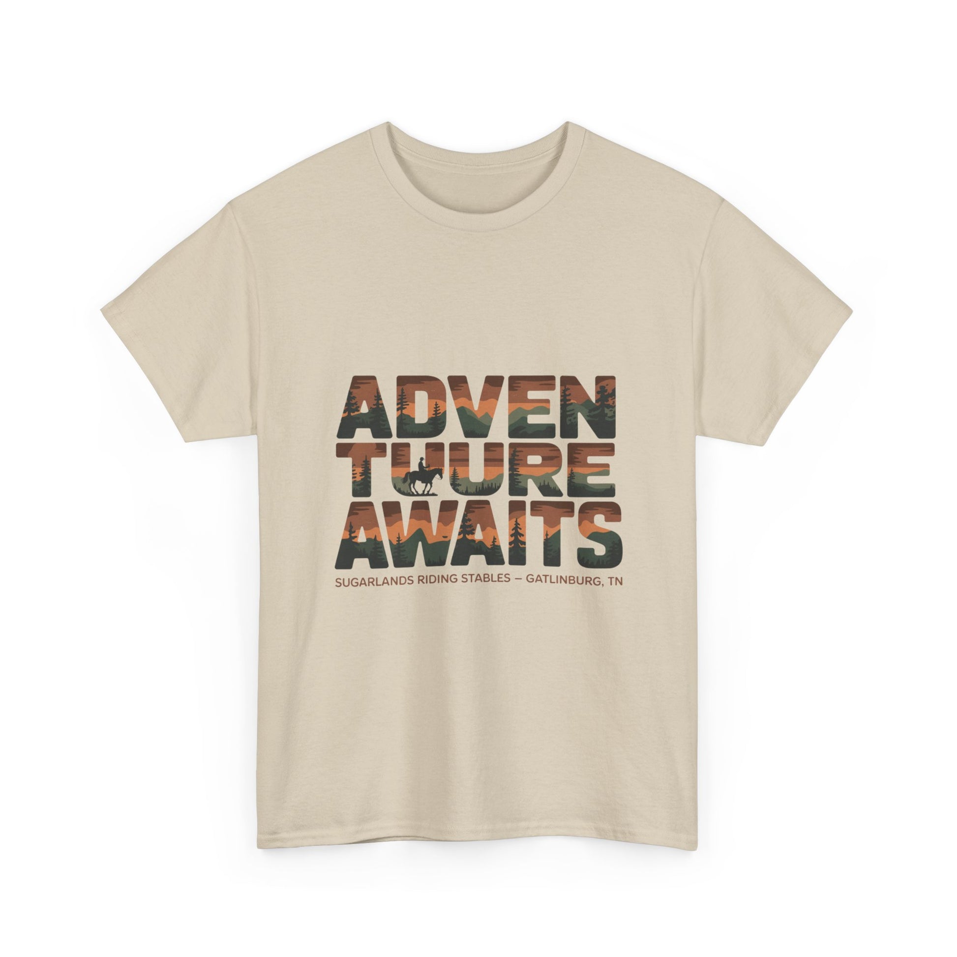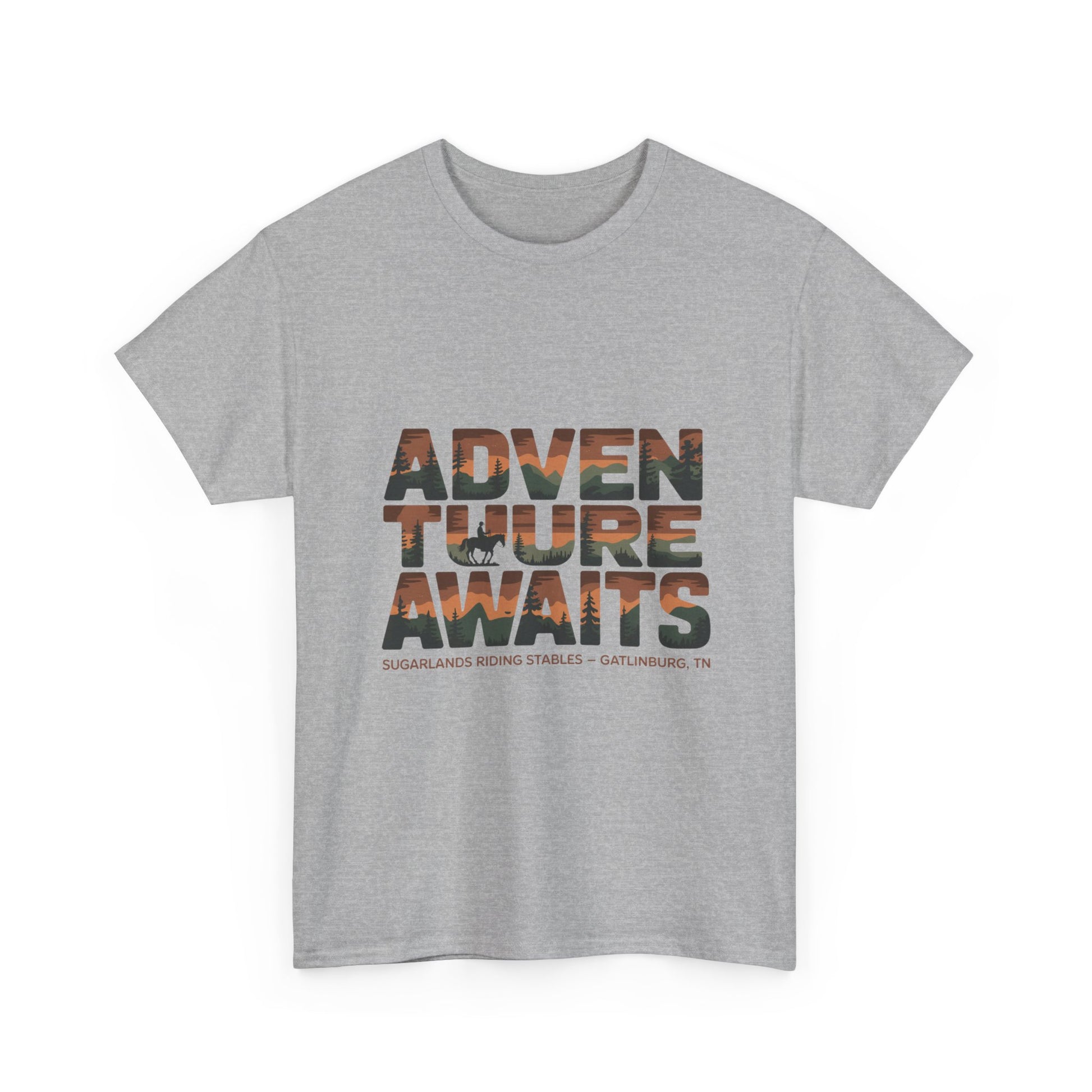 Adventure Awaits T-Shirt – Sugarlands Riding Stables Gatlinburg Smoky Mountains Outdoor Tee
