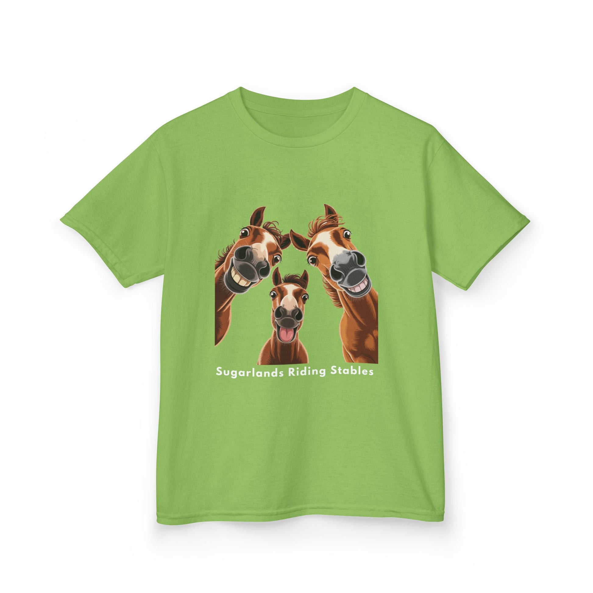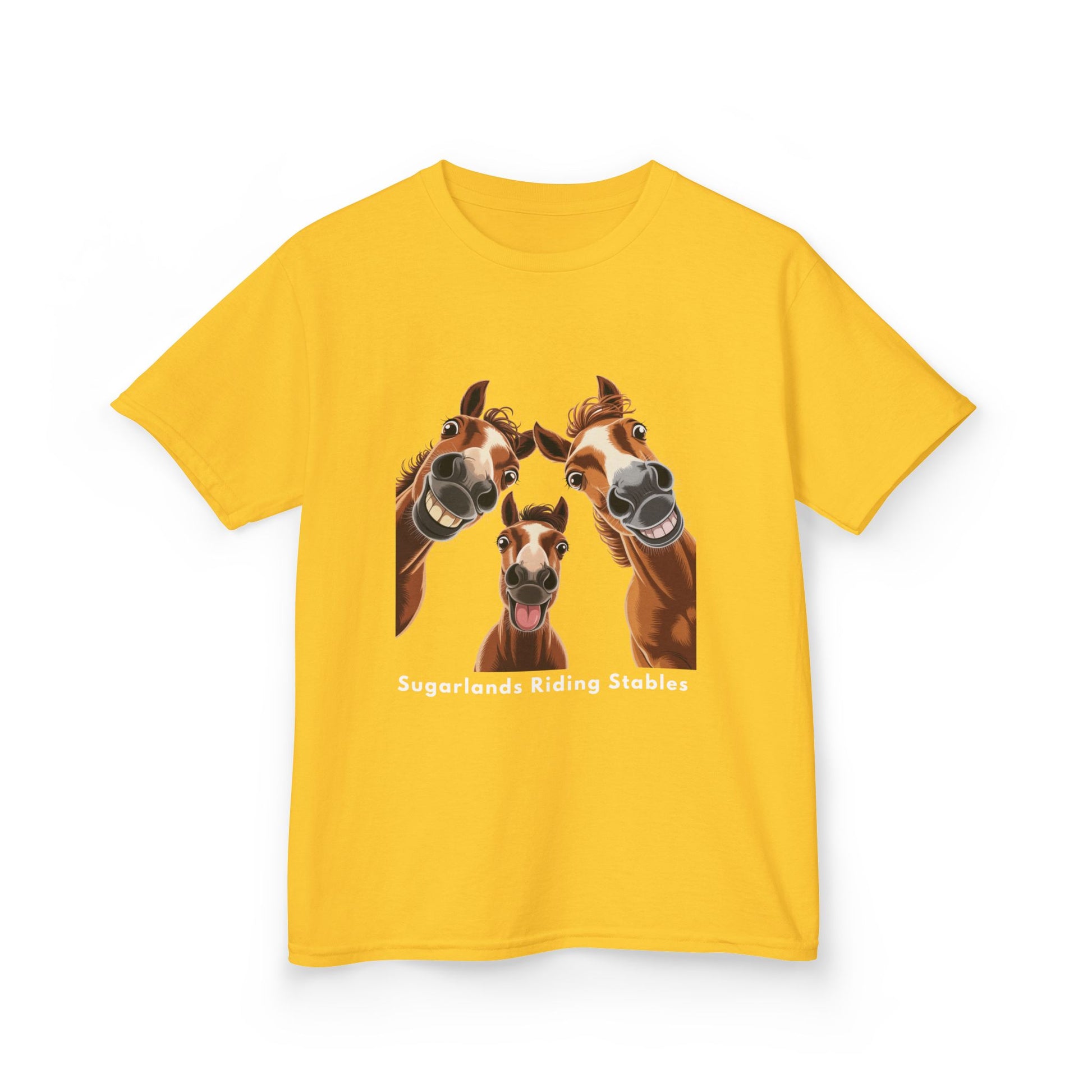 A hilarious trio of goofy horses makes this Sugarlands Riding Stables shirt perfect for riders who love humor, personality, and fun Western style.