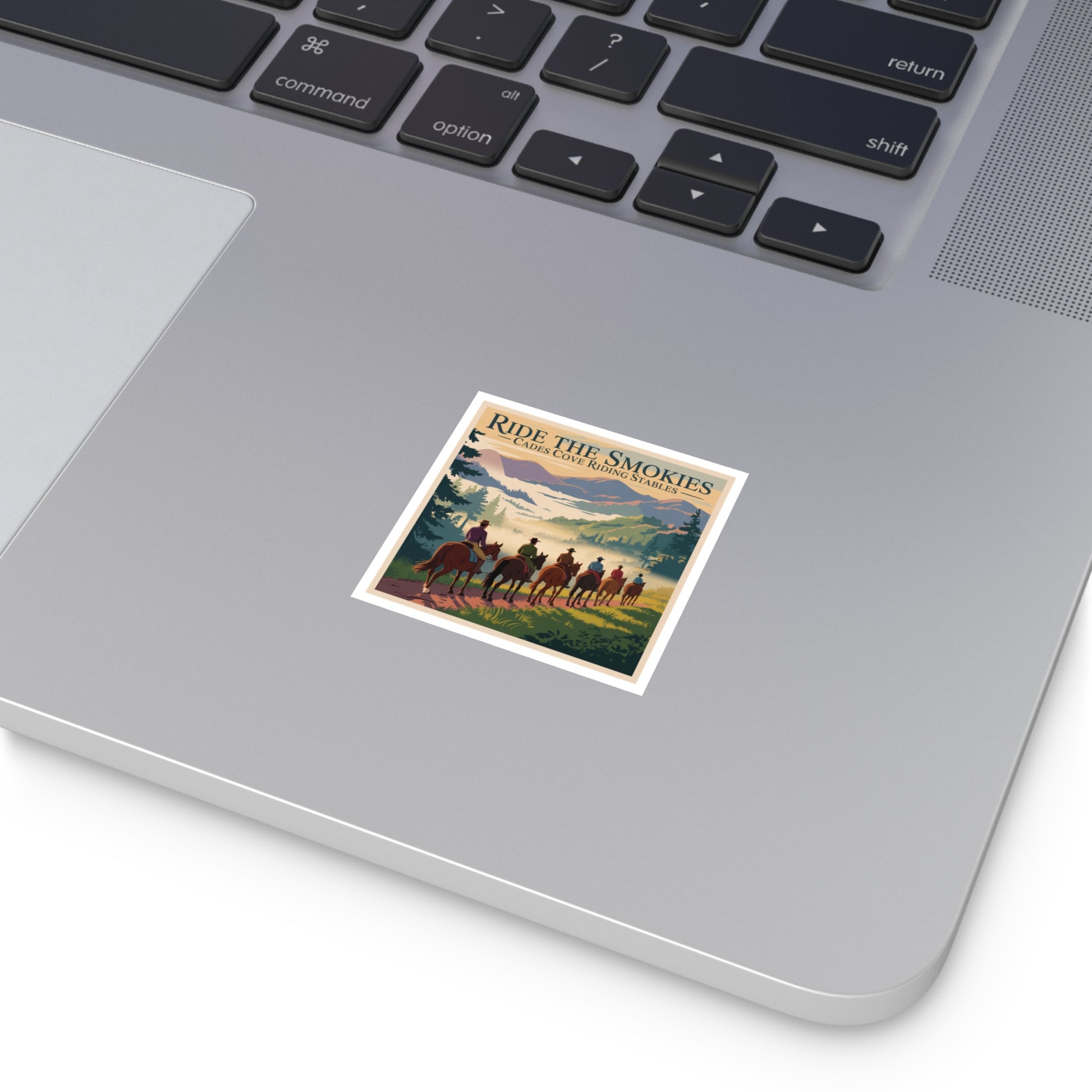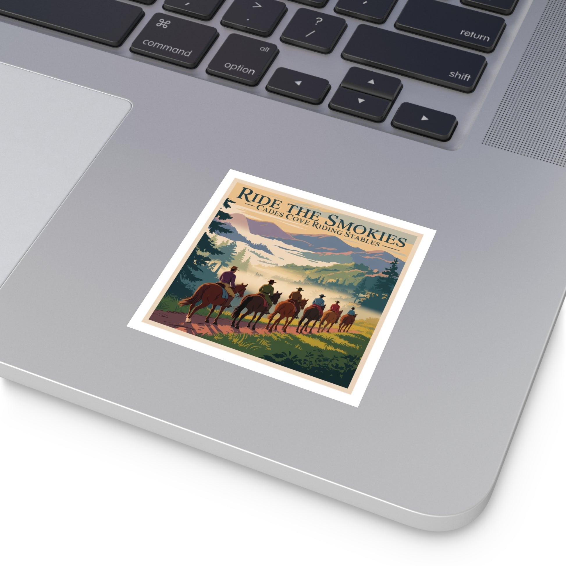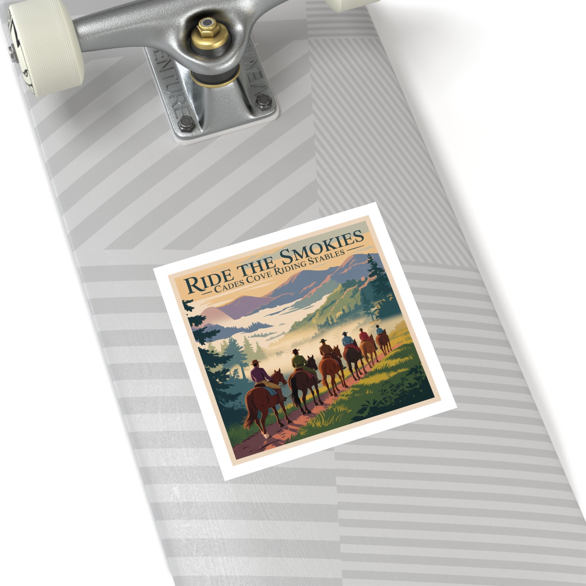 Take the beauty of the Smoky Mountains wherever you go with this Ride the Smokies sticker from Cades Cove Riding Stables. Featuring riders on a scenic mountain trail, this durable vinyl decal is perfect for cars, water bottles, and laptops. A great souvenir for horseback and nature lovers.